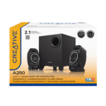 Creative A250 یک اسپیکر 2.1 که کیفیت صدای عالی را در یک فرم فاکتور جمع و جور ارائه میدهد. بلندگوهای جانبی سیستم اسپیکر کریتیو مدل Creative A250 2.1 از طراحی Creative DSE برخوردار است که این امکان را به آنها میدهد که حتی در صورت محدود شدن در یک محفظه یا بدنه جمع و جور به پخش صداهای بلندتر و عمیق تر بپردازند.