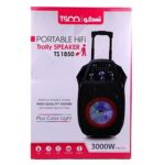 اسپیکر بلوتوثی قابل حمل تسکو TS 1850 که یک اسپیکر چمدانی است در ابعاد 480x310x280 میلیمتر و وزن 5500 گرم ساخته شده است. این محصول دارای دسته و چرخ می باشد و حمل و نقل ساده را برای شما فراهم می آورد، چرخ ها و دسته قابلیت جمع شدن را دارند.
