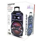 در کنار این آزادی عمل در هنگام اتصال شما میتوانید از کارت حافظه و رادیو هم استفاده کنید، موسیقیهای خود را در کارت حافظه ذخیره کنید و به اسپیکر خود وصل کنید. اسپیکر بلوتوثی قابل حمل کینگ استار مدل kingstar KBS448 با ابعاد 335x270x520 میلیمتر و وزن 5200 گرم ساخته شده است. توان ورودی و خروجی آن 30 ولت است. این محصول انرژی خود را از طریق باتری 2200 میلی آمپر ساعتی تامین میکند و با ولوم 50 درصد عمر باتری 6 ساعتی را تضمین میکند. برای پیدا کردن ترک و تنظیم مد دلخواه خود میتوانید از صفحه نمایش LED استفاده کنید. این محصول به ریموت کنترل مجهز است و شما میتوانید دستگاه را از راه دور تنظیم کنید. این دستگاه از فرکانس 100 هرتز تا 20 کیلوهرتز پشتیبانی میکند.
