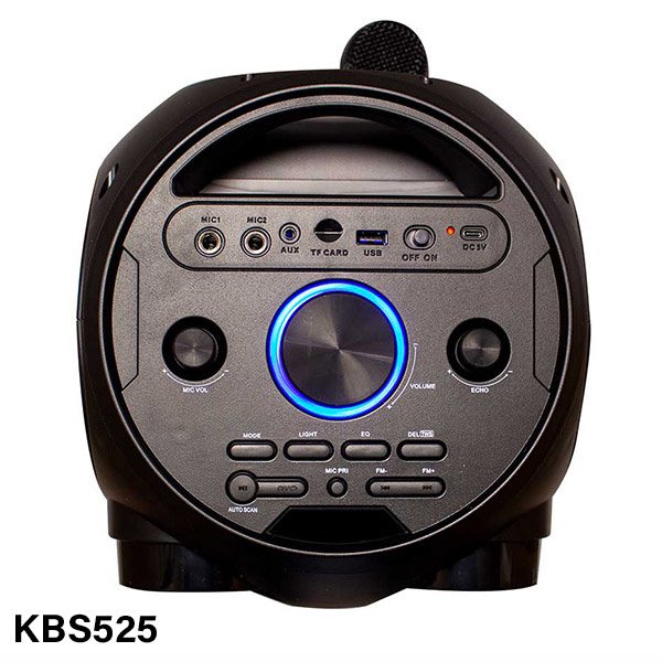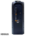 در پنل پشتی اسپیکر نیز 2 محفظه ی نگهدارنده ی میکروفون وایرلس تعبیه شده است. این محصول از طریق رابط های AUX, TF card, USB و بلوتوث به لپ‌تاپ، تبلت، آی پد، MP3 و گوشی‌های هوشمند متصل می شود و با نصب فلش مموری یا قرار دادن کارت حافظه TF در شیار توسعه ی مخصوص آن می توانید لیست دلخواه خود را به اسپیکر منتقل نمایید. اسپیکر بلوتوثی KBS525 توسط کمپانی تایوانی کینگ استار تولید و به بازار فروش عرضه شده است.