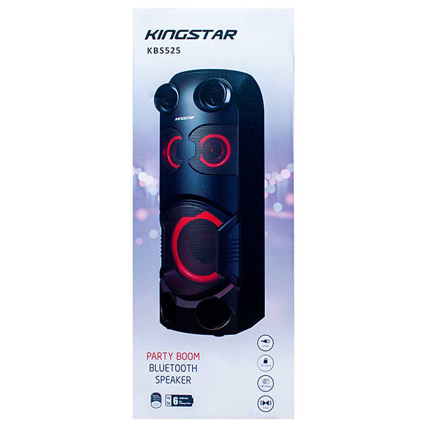 اسپیکر بلوتوثی کینگ استار KBS525 مخصوص فضاهای بزرگ طراحی شده است و با دو اتصال با سیم و بی سیم به پخش کردن موسیقی با کیفیتی بالا می پردازد. وزن سبک ۵۴۳۰ گرمی و ابعاد جمع و جور ۶۳۲ ×۲۸۷×۲۳۰ میلی‌متری اسپیکر امکان استفاده از آن را در هر گوشه و کناری فراهم کرده است. این محصول از رابط های AUX، TF card، USB ، بلوتوث و رادیو پشتیبانی می کند و با داشتن قابلیت TWS به اسپیکری دیگر متصل می شود و به پخش کردن همزمان صدا با کیفیتی بالا می پردازد.