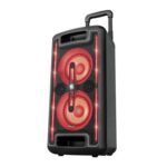 اسپیکر Klubb MX GO RGB Lights از کیفیت صدای پیشرفته ای برخوردار است. با صدای قدرتمند با اوج 160 وات خود؛ همه دوستانتان را به خود جلب کنید. به علاوه این اسپیکر از طراحی قابل حملی برخوردار است و با دسته و چرخ های جمع شونده می توانید اسپیکر را به راحتی به هر جایی که می خواهید ببرید. فقط کابل برق را وصل کنید و مهمانی های خود را شروع کنید.