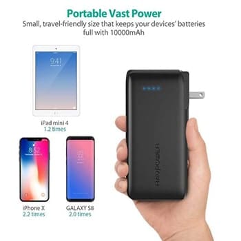 به راحتی شارژر دیواری را از پریز برق جدا کنید و از آن به عنوان پاوربانک استفاده کنید. شارژر همراه ۱۰۰۰۰ میلی آمپر ساعت راوپاور RP-PB066 به عنوان یک محصول 2 در 1 شناخته می‌شود و قابلیت حمل و نقل را برای شما ساده تر می‌کند. وقتی که در خانه هستید پاوربانک راوپاور RAVPower RP-PB066  را به راحتی با یک پریز برق شارژ کنید، در طی 6 ساعت باتری به طور کامل شارژ می‌شود. ظرفیت 10000 میلی آمپر ساعت به شما این امکان را می‌دهد تا گوشی آیفون ایکس خود را 2.2 بار، آیفون 8 خود را 3.2 بار، آیفون 8 پلاس را 2.2 بار ، گلکسی S8 را دوبار و آیپد مینی 4 خود را 1.2 بار شارژ کنید. تامین انرژی کاری است که پاوربانک RP-PB066 به راحتی از پس آن بر می‌آید.