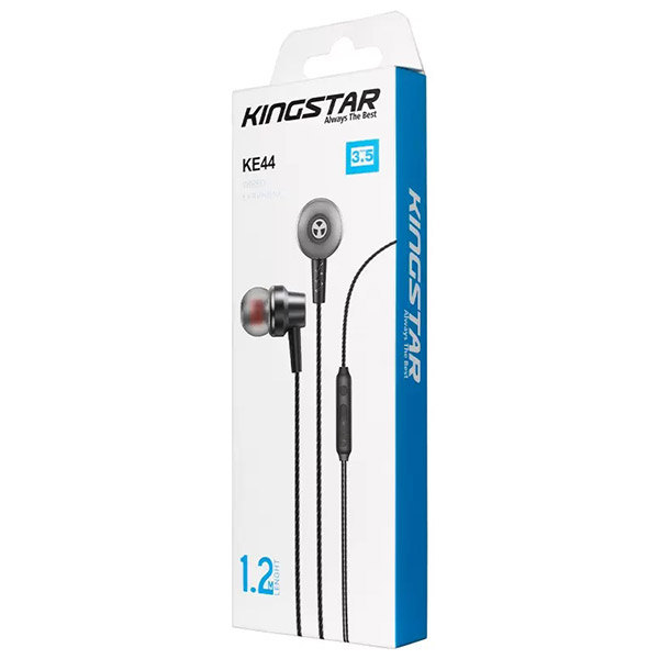 هندزفری باسیم کینگ استار KE44 از نوع توگوشی یا in-Ear می باشد که از طریق جک 3.5 میلی متری به دستگاه های دیگر مثل موبایل، تبلت و لپ تاپ متصل می شود و امکان مکالمه و شنیدن موزیک های مورد علاقه ی شما را فراهم می سازد. این محصول وزنی 10 گرمی دارد و بدنه ی آن از پلاستیک PVC و ABS ساخته شده است.