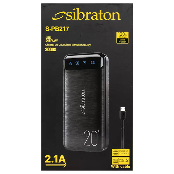 پاوربانک 20000 میلی آمپر ساعت سیبراتون S-PB217 نوعی باتری جهت ذخیره سازی انرژی الکتریکی می باشد که در شرایطی خاص مثل عدم دسترسی به برق جهت شارژ کردن گوشی و تبلت مورد استفاده قرار می گیرد. وزن سبک 235 گرمی پاور بانک حمل و جا به جا کردن آن را آسان ساخته است و ابعاد جمع وجور ۱۴۱.۵×۶۷×۱۵ میلیمتری آن فضای کمی را اشغال کرده طوری که می تواند درون کیف لپ تاپ نیز جای بگیرد.